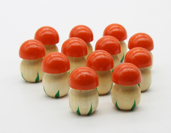 Комплектация: 12 расписных деревянных грибочков размером 4х2,5 см