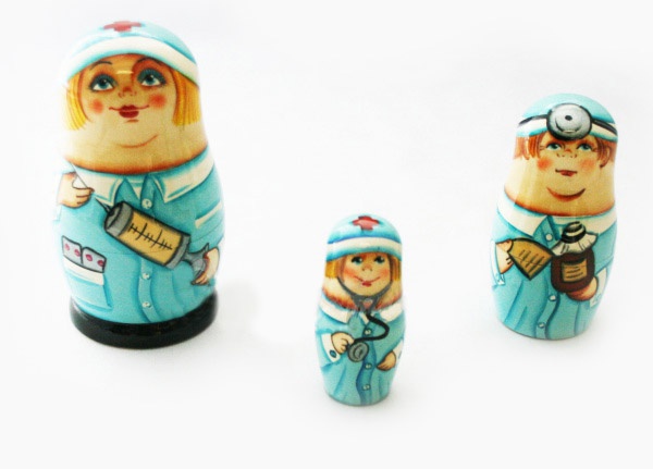 Это знают все родители – малыши, мягко говоря, не очень-то любят докторов. Ведь у них для малышей припасено много всего неприятного: шприцы, например, с длинными иголками или невкусные лекарства. То ли дело симпатичные доктора – матрёшки, тут все по-другому. С ними можно и веселую игру затеять, и маме с папой отдать для украшения дома, и истории захватывающие придумать с участием ярких фигурок. А самое главное, что доктора-матрешки такие добрые, улыбчивые! И шприцы у них в руках не такие страшные, и микстуры явно не такие горькие.
