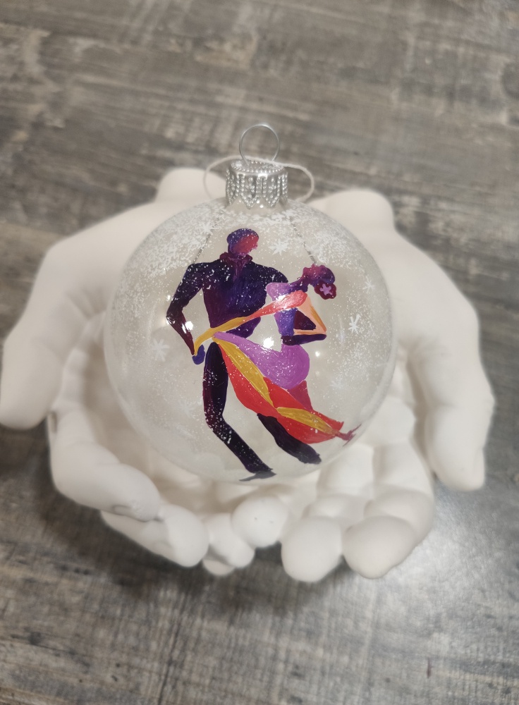 Диаметр 8 см, стекло, авторская ручная роспись темперными красками, шар покрыт глянцевым лаком.