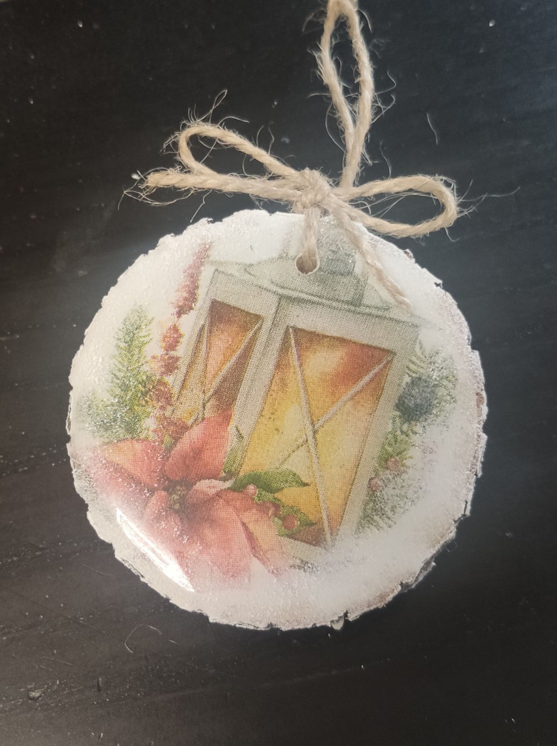 Новогодний декор круглый Фонарь (спил дерева 7,5 см)