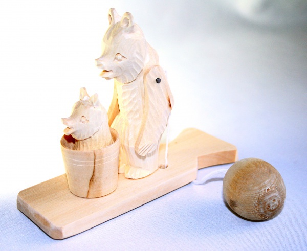 Заботливая Мамочка- медведица купает в ушате своего сорванца. Приведя в действие игрушку, Вы увидите ласковые движения ее лапок.