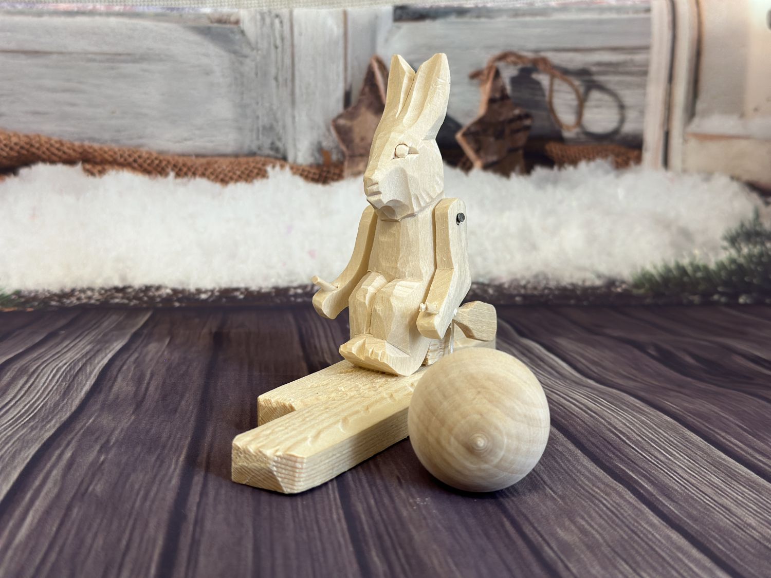 Богородские игрушки издавна считаются эталоном Русского народного промысла, направленного на создание уникальных изделий из дерева. Недаром утверждают, что практически все жители деревни Богородское способны выстрогать из куска древесины настоящее произведение искусства. Представляем вашему вниманию оригинальную игрушку «Зайка на плоту». Изделие создано из натуральной древесины. Полностью ручная работа. Забавный заяц сидит на плоту и держит в лапах весла. Если полавировоть игрушкой, держась за рукоятку-продолжение плота, деревянный грузик, подвешенный на ниточках, начнет вращаться, приводя в движение медвежонка, который сразу начинает активно шевелить лапами и грести, как будто собирается уплыть на плоту. Игрушка не окрашена и еще хранит в себе аромат натурального дерева.