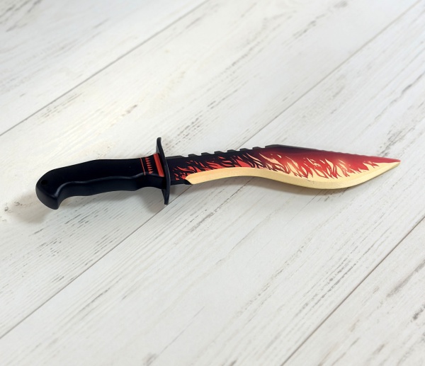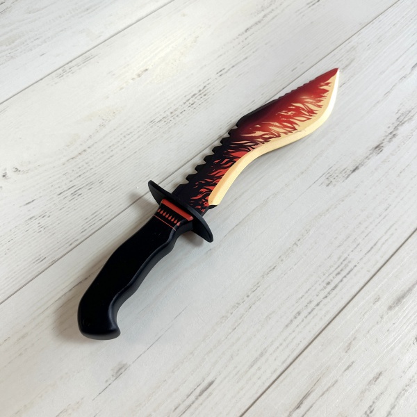 Нож выполнен из дерева. Нож безопасен для игр, так как кончик ножа затуплен.
