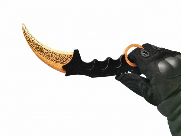 Легендарный нож керамбит из игры CS:GO Этот нож оригинальной формы с обратным хватом выглядит очень устрашающе и даже агрессивно.