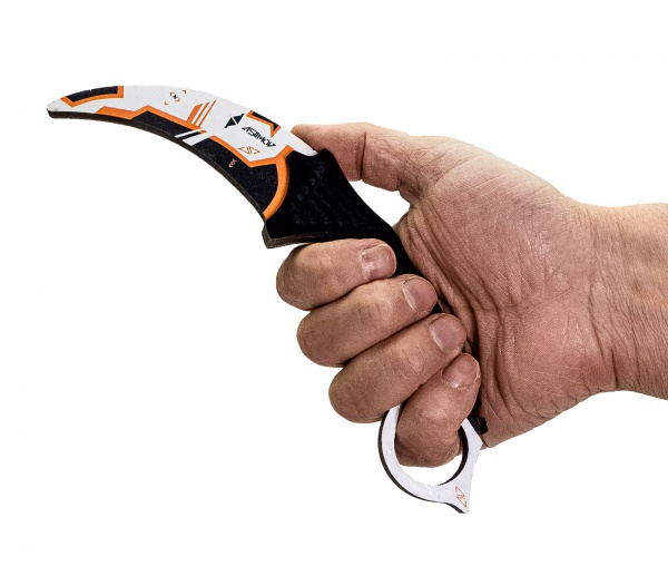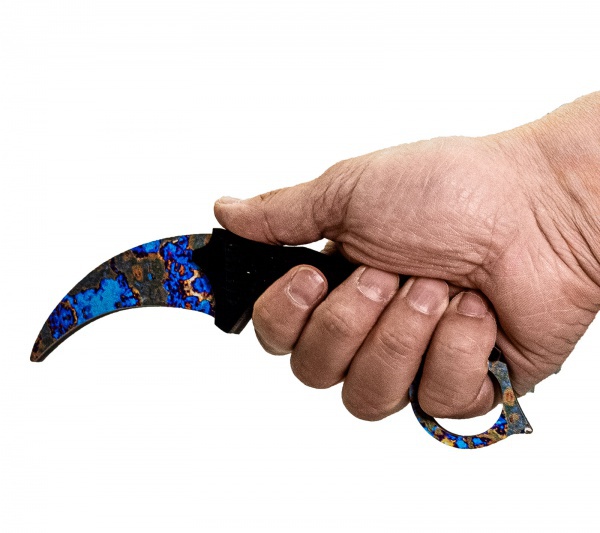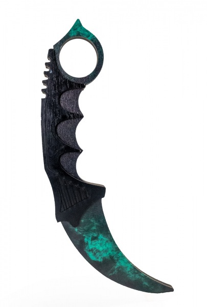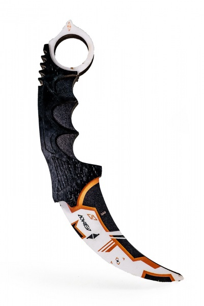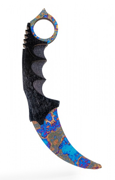 Пусть войны случаются понарошку, а дети растут сильными и добрыми. Об этом думал автор, вырезая каждую извилину керамбита, рисуя на нём нереальные светящиеся фоны, старательно подгоняя отверстие на ручке под детский пальчик. Можно купить ребенку для игры или в подарок.