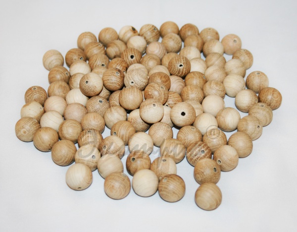 Деревянные изделия всегда привлекали людей своей непревзойденной красотой и природной силой. Набор больших бусин из настоящего дуба даст возможность и вам стать своеобразным волшебником, властелином деревянных изделий. Раскрасив шарики в разные цвета, а после высыхания краски поскрыв их тонким слоем прозрачного лака, бусинки можно надеть на тонкую бечевку. В результате получиться красочное монисто, главная ценность которого состоит в том, что вы его сделали собственными руками из природного материала Такое изделие будет приятно носить, а также оно может стать оригинальным подарком. И это далеко не единственный способ использовать дубовые заготовки. Все зависит от вашей фантазии. Диаметр каждого шарика составляет 1.8 см. Все шарики одинакового размера, гладко отшлифованные, с отверстиями в центре.