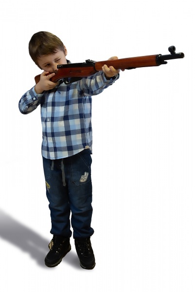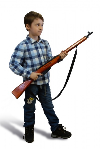 В макетном монолитном исполнении Винтовка Мосина полностью сохранила линии, пропорции, детали и колористику своего прототипа. Уменьшенный масштаб (85% от оригинала), безопасное исполнение, облегченный вес, удобный ремень позволяют брать в увлекательную игру даже десятилетних Орлят.