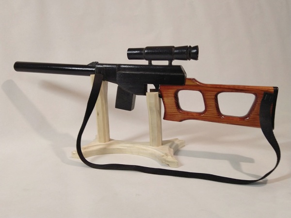 Деревянная имитация «живого» стрелкового оружия даёт возможность совсем юному подростку ощутить себя метким стрелком и в игровой подаче освоить важные жизненные навыки: глазомер, усидчивость, сосредоточенность и т.д.