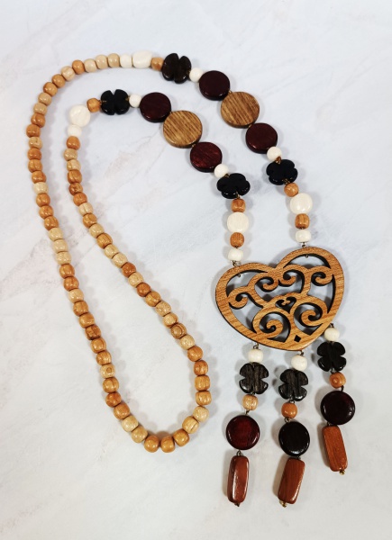 Чудесные длинные бусы с резным кулоном в форме сердца дополнят образ, сделают его женственным и неповторимым. Такие бусы будут прекрасно смотреться и на светлой, и на темной одежде.