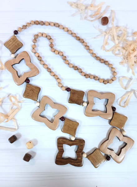 Изящные и стильные деревянные бусы создают игривое настроение. Бусины сделаны из разных пород дерева, имеют необычную форму, модный бежевый оттенок, являются прекрасным дополнением множеству образов, прекрасно сочетаются как с летними сарафанами, так и с зимними свитерами и водолазками.