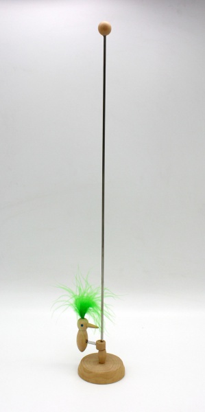 Игрушка представляет собой металлическую антенну, на которой закреплен дятел. Если поднять птичку вверх и качнуть, то дятел медленно и последовательно будут спускаться к основанию и при этом весело постукивать клювиком.