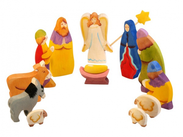 В праздник Рождества Христова с давних пор устанавливали в домах и на улицах «вертепы», изображающие сцену Евангельской истории и рассказывающие всему миру о том замечательном дне, когда родился Иисус. Подарив детям комплект фигурок, вы можете поведать им о Вифлеемской звезде, которая привела пастухов в хлев к Марии и Иосифу, а также о том, почему в этот праздник дарят подарки детям. В наборе «Рождество с пастухами» 12 фигурок, изображающих главных героев Евангельской истории: Мария, Иосиф, ясли с Младенцами, Пастухи, Ангел и животные. Ваш ребенок может собрать самостоятельно композицию, расставив героев рождественской истории по своему усмотрению. Фигурки выполнены из дерева и расписаны приятными цветными красками.