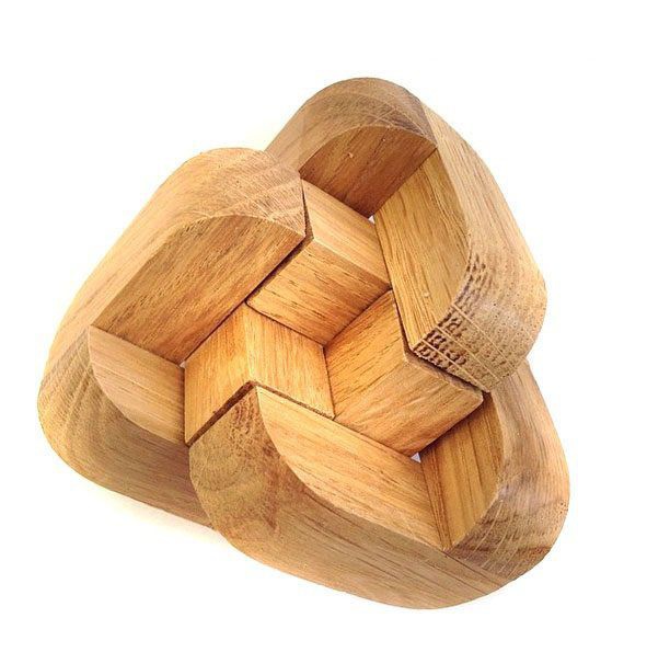 Излюбленный вид головоломок для ценителей умственных сражений – деревянные узлы. «Загогулина» представляет собой деревянный узел с тремя деталями. Каждая деталь имеет сцепку с двумя другими, при верном решении все три части образуют прочную конструкцию.
