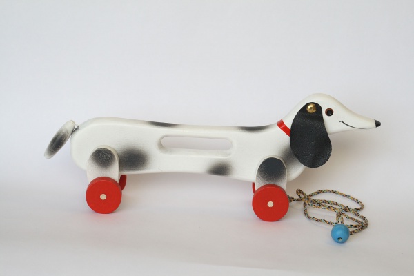Собаки бывают разных окрасов, разных пород и они постоянно находятся рядом со своим хозяином, даже если они деревянные. Игрушки-каталки – обязательный этап игрового развития каждого ребенка. У игрушки имеется удобная округлая ручка, чтобы было удобно переносить «четырехколесного» друга с места на место. Ребенок с радостью возьмет свою собачку на прогулку. Игрушка сделана из натурального дерева и покрыта безопасными красками. Каталка предназначена для детей младшего возраста. Вашему ребенку понравится катить за собой красивого Таксенка.