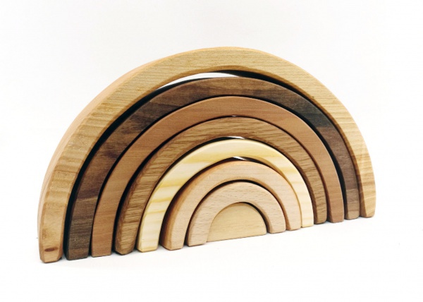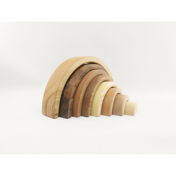 Радуга из разных пород дерева : бук, ольха, орех, дуб, липа, карагач, клен, сосна.