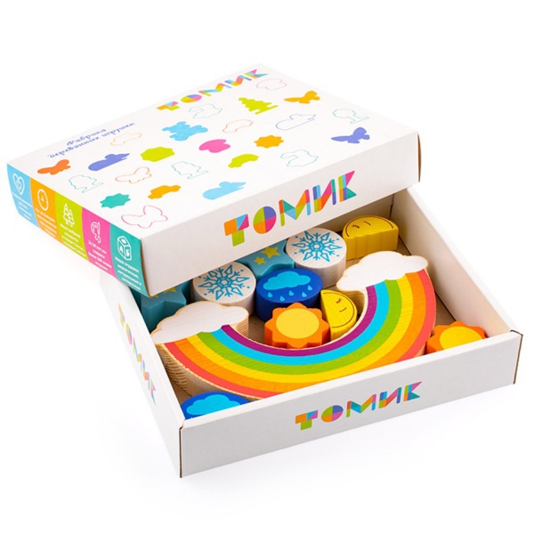 Экологичный деревянный конструктор-собирайка «Радуга» — это отличное развлечение для мальчишек и девчонок старше двух лет. Яркий дизайн знакомит малышей с небесными обитателями и цветами. А чтобы собрать их всех на Радуге понадобится немалая ловкость, смекалка, усидчивость и умелость. Ведь Радуга — это балансир. Нажмешь на край — начнет качаться, и посыплются гости, не поймаешь.
