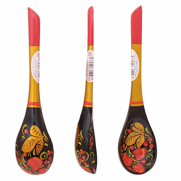 Деревянные ложки, расписанные под хохлому красными, чёрными, золотыми узорами веками украшали русские кухни и подавались к столу к жидким национальным блюдам: супам, квасам, сбитням.