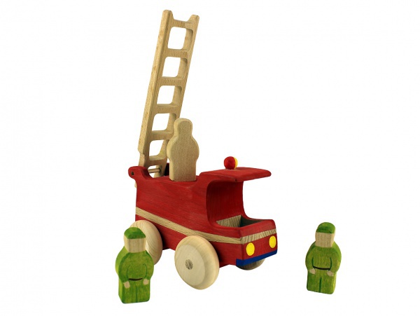Дети играют во взрослых, в том числе и в пожарников. А какой огнеборец не умеет ловко обращаться с огнетушителем и пожарной техникой? Манёвренная пожарная машина с экипажем в минуты прибывает на место трагедии и укрощает стихию, тем более, такая ярко-красная и с жёлтыми фарами, большими колёсами, длинной лестницей и тремя смелыми дружинниками на борту.