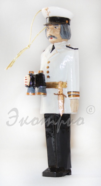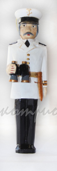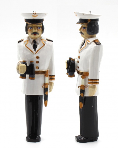 Статный, красивый, смелый и уверенный капитан военного корабля – отличный подарок для мальчишки или же взрослого человека, любящего морскую романтику, служившего в военно-морских силах, тяготеющего к морфлоту. Фигурка изготовлена вручную, в ней удивительным образом передан каждый отдельный элемент – выражение лица капитана, мелкие детали формы, кортика и т.д. Фигурка оснащена петелькой, что позволяет использовать ее в качестве подвеса, но также она довольно устойчива, ее можно просто ставить на стол или другие ровные поверхности.