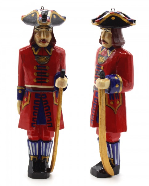 Миниатюра «Солдатик Офицер 1700-1720гг Россия» высотой 14 см, выполненная из натурального дерева и расписанная вручную безопасными акриловыми красками, прекрасно детализована и и очень реалистична. Эта искусно выполненная российскими мастерами фигурка может служить прекрасным дополнением к коллекции или стать участником исторических реконструкций эпохи начала XVIII в.