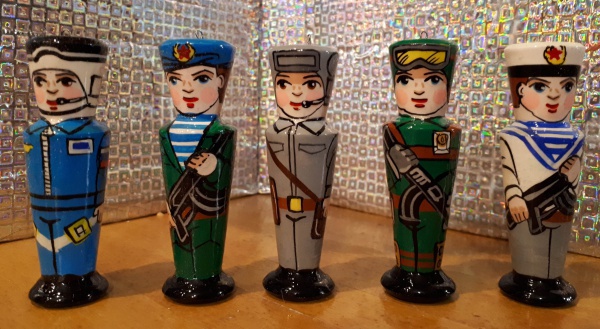 Играя и инсценируя сражения, мальчик будет подражать солдатикам и в жизни, понимая важность защиты не только своей страны, но и близких ему людей. Солдатики выполнены из натурального дерева умелыми руками российских мастеров, расписаны вручную, оснащены металлической петелькой для подвеса.
