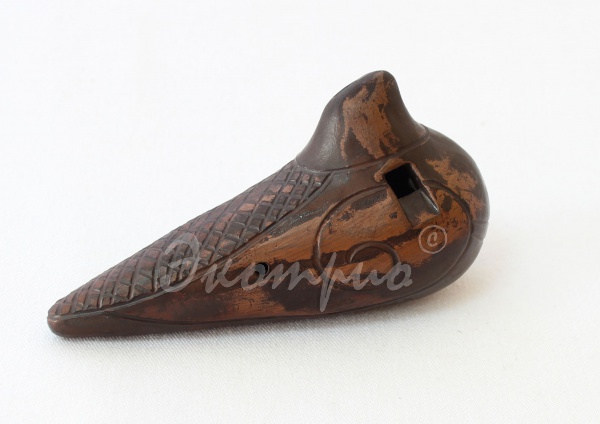 Выбирайте, какая форма свирели вам приглянулась больше – птичка или черепашка? Свирели, украшенные витиеватым рисунком, ложатся в руку как влитые. Глина быстро становится теплой от тепла рук, и свирель начинает петь, стоит лишь поднести ее к губам и слегка подуть.