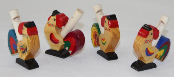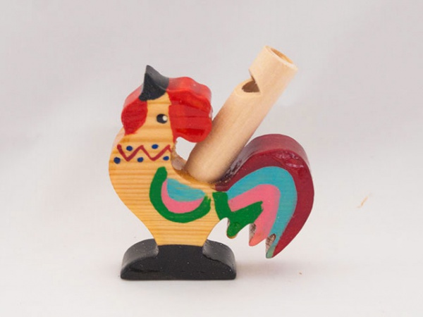 Необычная свистулька, сделанная из дерева в форме Петушка – прекрасный подарок ребенку-дошкольнику. Раньше малышам всегда делали свистульки из тростника, из дерева или из глины. Эта простая, на первый взгляд, игрушка вызовет бурю радостных эмоций у любого малыша. Ведь, для того чтобы свистеть, в нее нужно дуть. В обычной жизни ребенок не делает это часто, хотя это действие помогает начать говорить рано и чисто выговаривать даже самые сложные звуки. А сколько интересных игр со свистком можно придумать!