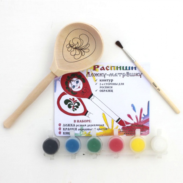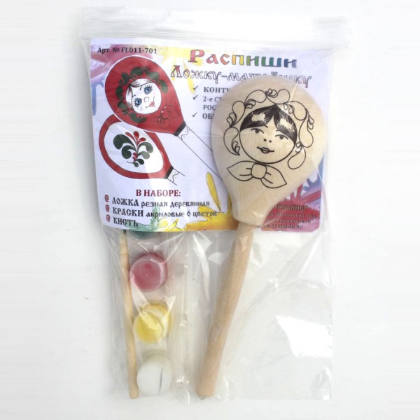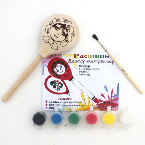С помощью прилагающихся красок раскрашивается симпатичная матрешка, а лак закрепляет рисунок и не дает ему повредиться.