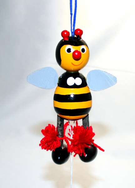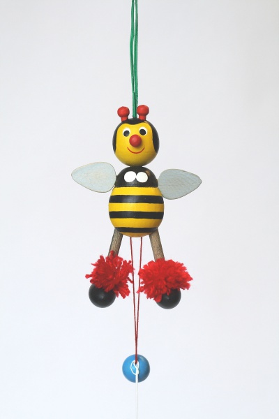 Пчелка Жужа на веревочке. Лапки и крылышки подвижны. Яркая и интересная деревянная игрушка, полезна для мелкой моторики рук.