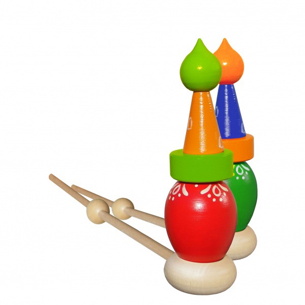 - в наборе: 2 палочки с лунками для яиц, две палочки с шариками на концах, 2 яйца, 2 шайбочки, 2 фигурки