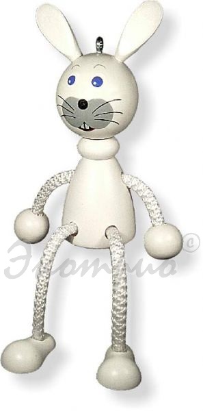 Этот заяц – поистине самый белый заяц во всем свете, он просто блистает белизной и от этого выглядит еще более трогательным. Умелая рука художника нарисовала мордашку так ,что теперь Вы точно знаете, что такое заячий взгляд: наивный, удивленный и настороженно-испуганный. У зайца ушки на макушке, и лапки-пружинки готовы нести его без оглядки от малейшего дуновения ветра, поэтому прикрепите его поближе к себе, да и покрепче, и не забывайте его время от времени приободрять и нежно обнимать ладошкой!
