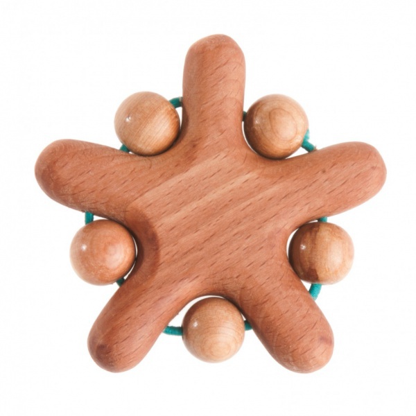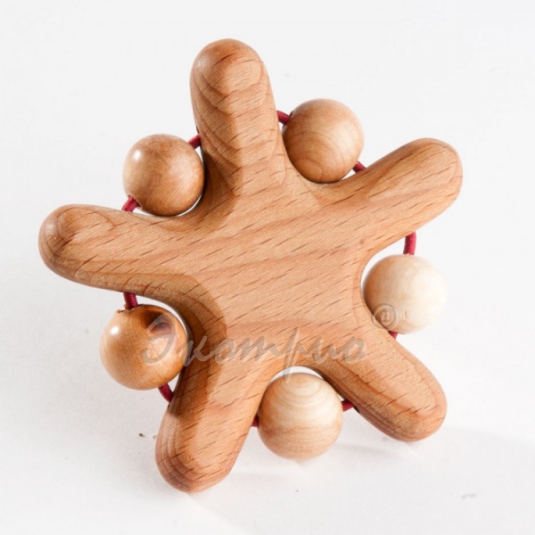 Древесина можжевельника обладает бактерицидными свойствами. Идеально обработанные деревянные бусины и звездочка хорошо подходят в качестве игрушки, которую можно пробовать «на зубок». Бусины можно вращать, тренируя маленькие пальчики.