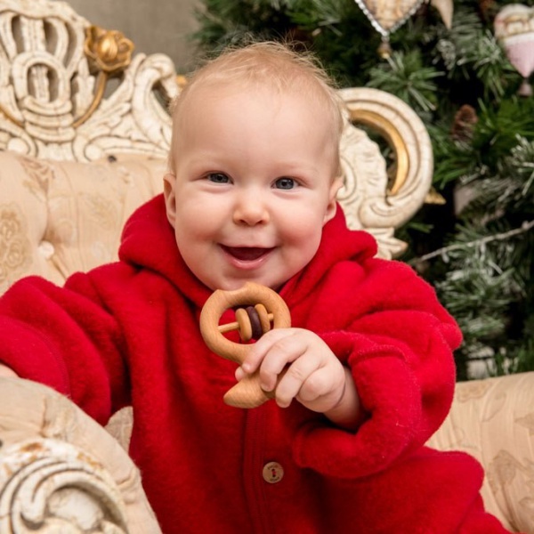 Как приятно подарить малышу игрушки, в которых есть душа. Это одна из таких игрушек. В эту погремушку-грызунок вложено очень много сердца и труда: полностью ручная работа, безупречное качество шлифовки. Погремушка неокрашена, покрыта льняным маслом высочайшего качества, но тем не менее радует глаз цветовыми контрастами. Две бусины выточены из ценного твердого красного дерева, растущего в Южной Америке - амаранта (пурпурное сердце, фиолетовое дерево), древесина которого необычайно устойчива к ударным воздействиям. Одна центральная, белая, из клена. Вместе с буковой основой погремушки они дают просто роскошное сочетание. Эта деревянная игрушка может стать прекрасным подарком любому малышу. Размер 8 х 5,5 х 1 см Вы можете купить эту замечательную деревянную игрушку в нашем интернет-магазине с доставкой по Москве и России.