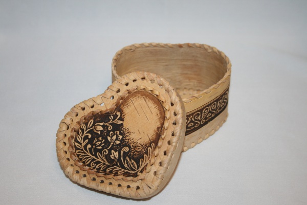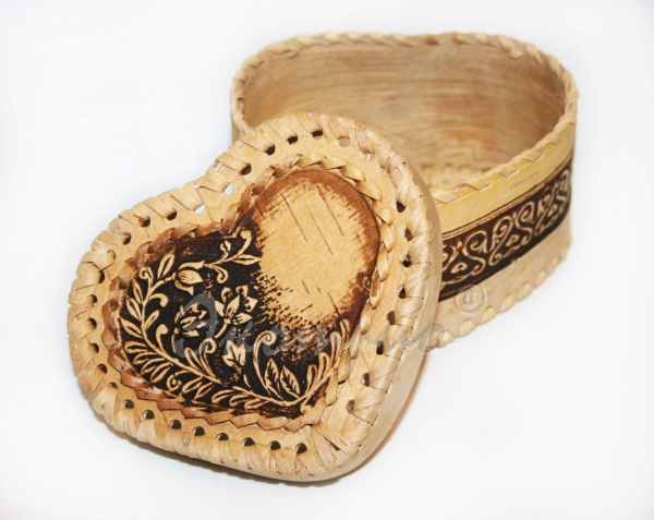 Для чего дожидаться Дня влюбленных, чтобы рассказать о своих нежных чувствах, ведь о любви можно говорить каждый день. Берестяная шкатулка «Сердце» доставит радость любимой женщине, порадует ее своей тонкой ручной работой, искусно отделанной каймой и тисненым рисунком. Сердце, как символ любви и правдивости, расскажет о ваших эмоциях и душевных порывах лучше, чем любые слова. Каждый раз, открывая шкатулку и перебирая милые сердцу украшения, ее хозяйка будет наполняться позитивной энергетикой, которой обладает березовая кора. Береста, кроме того, водонепроницаема и прекрасно подходит для изделий, предназначенных для длительного хранения – для любых украшений и приятных вещиц.