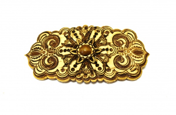 Береста не выходит из моды – украшения из нее всегда актуальны. На этой заколке расцвел цветок из бересты – растительный орнамент притягивает взгляды и подчеркивает красоту волос.