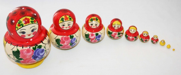 Семеновская матрешка – яркий колорит народного промысла. Десять расписных липовых красавиц выстроились в ряд, чтобы закружиться в хороводе. Столько чудесных эмоций может подарить такая кукла Вашему ребенку! Каждая матрешечка имеет свое место – можно научиться сравнивать размеры. Вложение этой игрушки одной в другую - хрестоматийная ситуация, которую нужно пройти каждому малышу, чтобы узнать, куда же делись все фигурки и как они там помещаются. Отложив образ разборных деревянных кукол в памяти, ребенок впоследствии сможет воссоздать «принцип матрешки», создав логическую модель применительно к какой-либо жизненной ситуации.