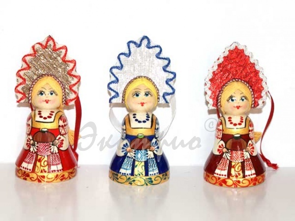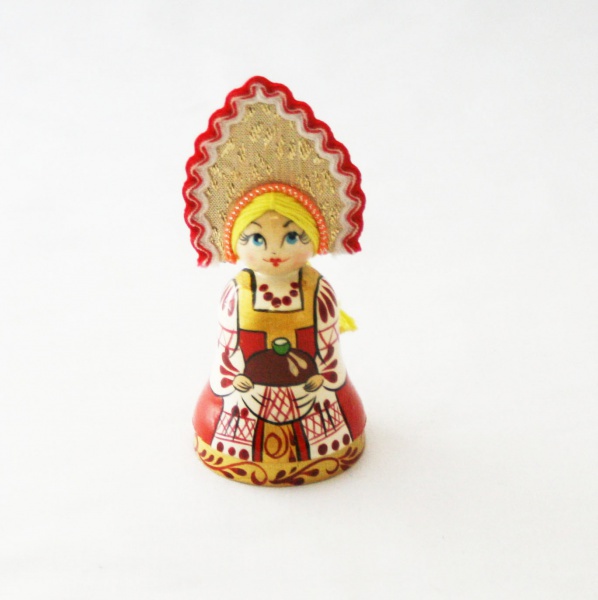 Колокольчик Девочка с кокошником – превосходный сувенир с национальным колоритом! Румяная, розовощекая барышня в национальном костюме и кокошнике понравится каждому. Такой колокольчик можно повесить на елку, использовать в качестве декоративного элемента для обустройства помещения в исконно русском стиле, презентовать деловым партнерам в качестве отечественного сувенира.