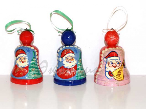 Нарядный деревянный колокольчик напоминает нам о Рождестве, замечательном празднике, таком любимом и взрослыми и детьми. Веселый Дед Мороз принесет сказку в Ваш дом. Колокольчик можно повесить на елку, подарить в качестве сувенира, использовать в Рождественских композициях, сделанных при помощи хвойных веток, свечей, мишуры. Если купить несколько разноцветных колокольчиков для дизайна интерьера, то можно получить красивый новогодний ансамбль. Каждый колокольчик хорош по-своему, их можно разглядывать вместе с ребенком и придумывать занимательные приключения Деда Мороза в зимнем лесу.