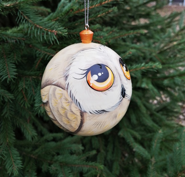 Нарядный елочный шар «Полярная сова» изготовлен из дерева и имеет диаметр 10 см. Он — яркий представитель новогодней коллекции украшений на ВудФан. Подарите совушку — белую головушку — себе на Рождество или родным на Новый год. Пусть доброй экологичной игрушкой с удовольствием играют малыши — она не разобьется, не утратит лаковый блеск и не наскучит. Тонкая работа российских умельцев заслуживает уважение. Каждое перышко детально прорисовано. Все для того, чтобы праздник удался!