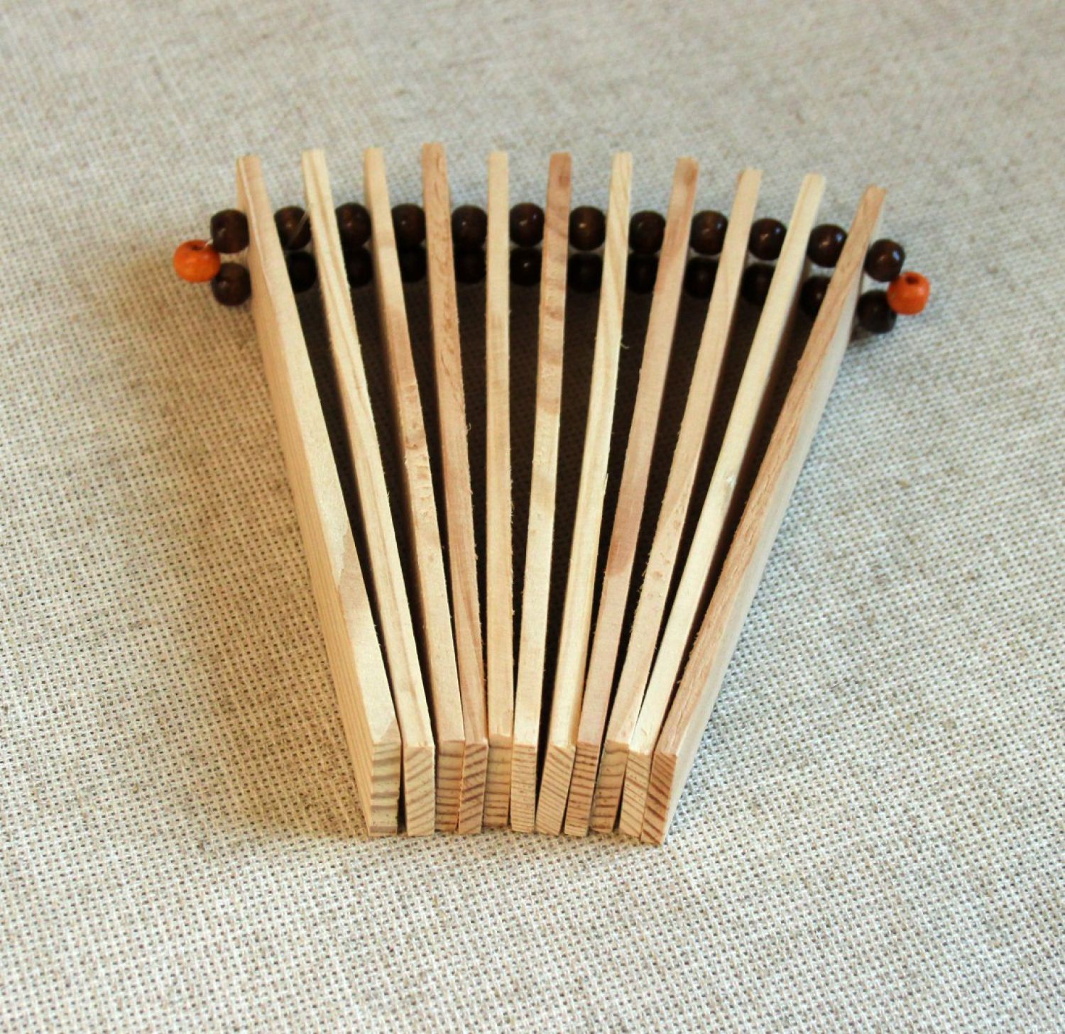 - Соединение деревянных пластин с помощью лески и декоративных деревянных бусин