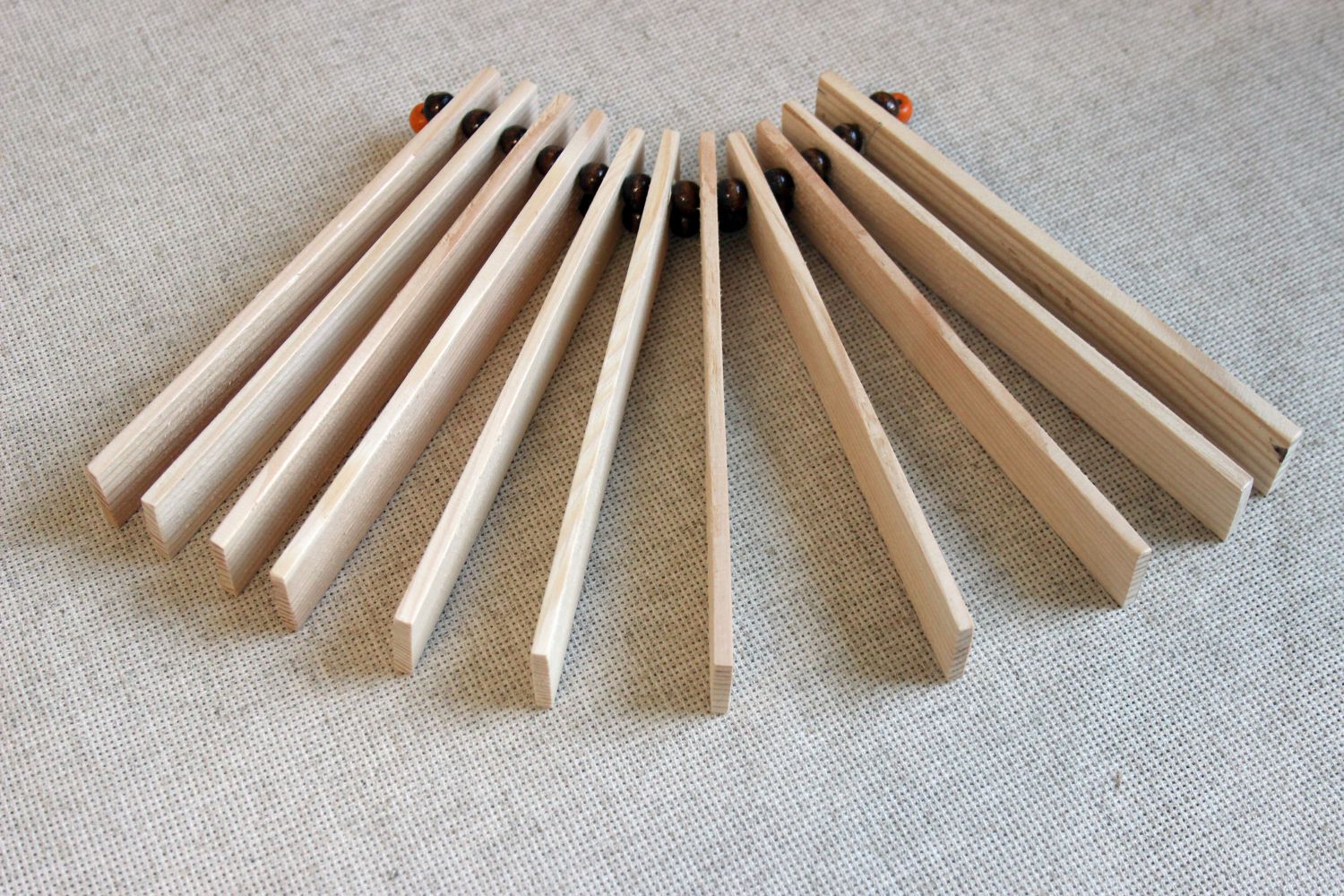 Музыкальный инструмент — трещотка веерная, изготовлена вручную из натурального дерева.