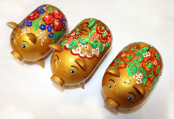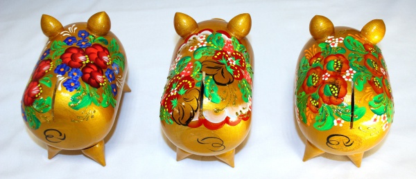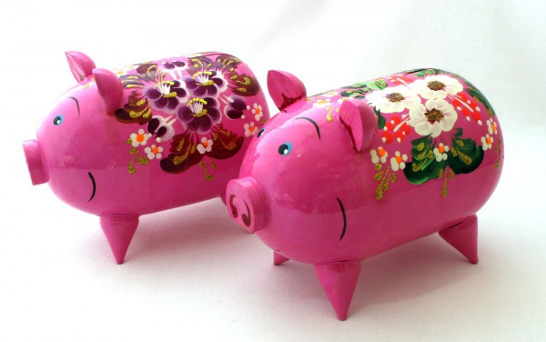 Под Новый год принято класть под ёлку пустые кошельки, – это к достатку. Но в год Жёлтой Земляной Свиньи его место может занять смешная копилка в виде розовой ушастой зверюшки с пятачком. Изделие выполнено из качественного дерева с оригинальным оформлением. Цилиндрическое тело стоящего на острых ножках поросёнка открывается, как коробочка, и украшено яркими расписными попонками (два вида). Сверху имеется заветная прорезь для приёма монет.