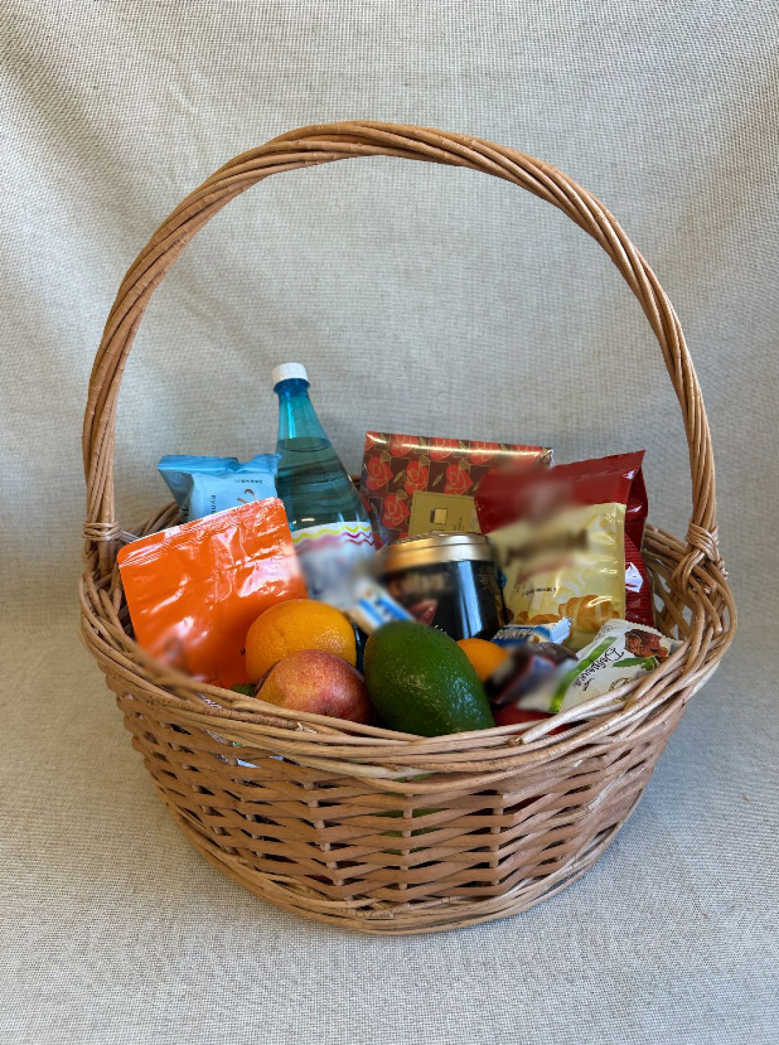 История этой подарочной корзины совсем простая. Добрый мастер сплёл её из длинного ивового прута. Он строго придерживался ремесленной технологии, которую передал ему дед.