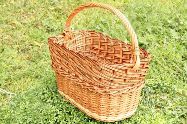 Корзина одиночная F067 изготовлена из прочной, экологически чистой лозы — сплетена вручную. В изготовлении корзинки использовано два способа плетения — послойное и ажурное, середина декорирована плетёной косичкой. Наличие в плетении небольших отверстий позволяет хранящимся внутри продуктам «дышать». Модель средних размеров удобна для выхода на рынок, поездок на дачу, походов в лес или хозяйственных нужд. Корзинка имеет легкий вес, удобна в эксплуатации и функциональна. Благодаря стильному плетению, корзина одиночная станет приятным подарком, которому всегда найдется применение – для близкого человека, для друга, для себя.