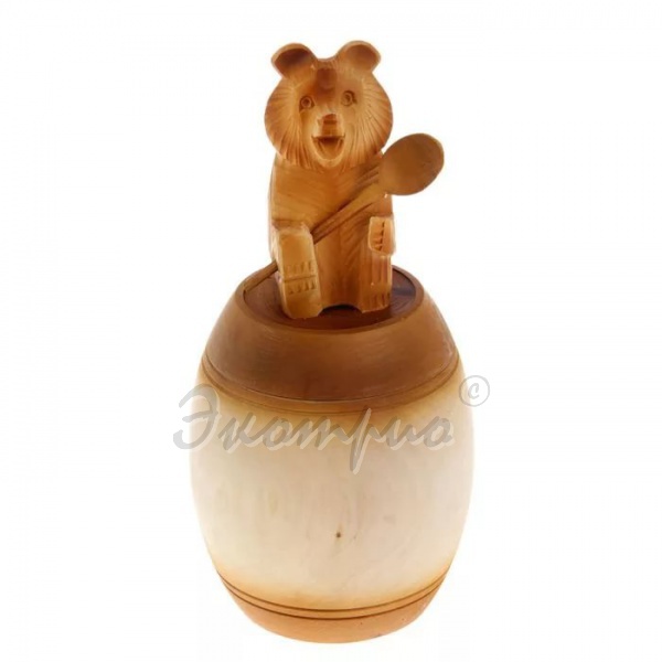 Бочонок для меда или сыпучих продуктов. Ручная работа. Бочонок вощеный с резным медведем на крышке большой выполнен из натурального дерева (липа), внутри вощеный натуральным воском. Подходит для 3 кг меда.