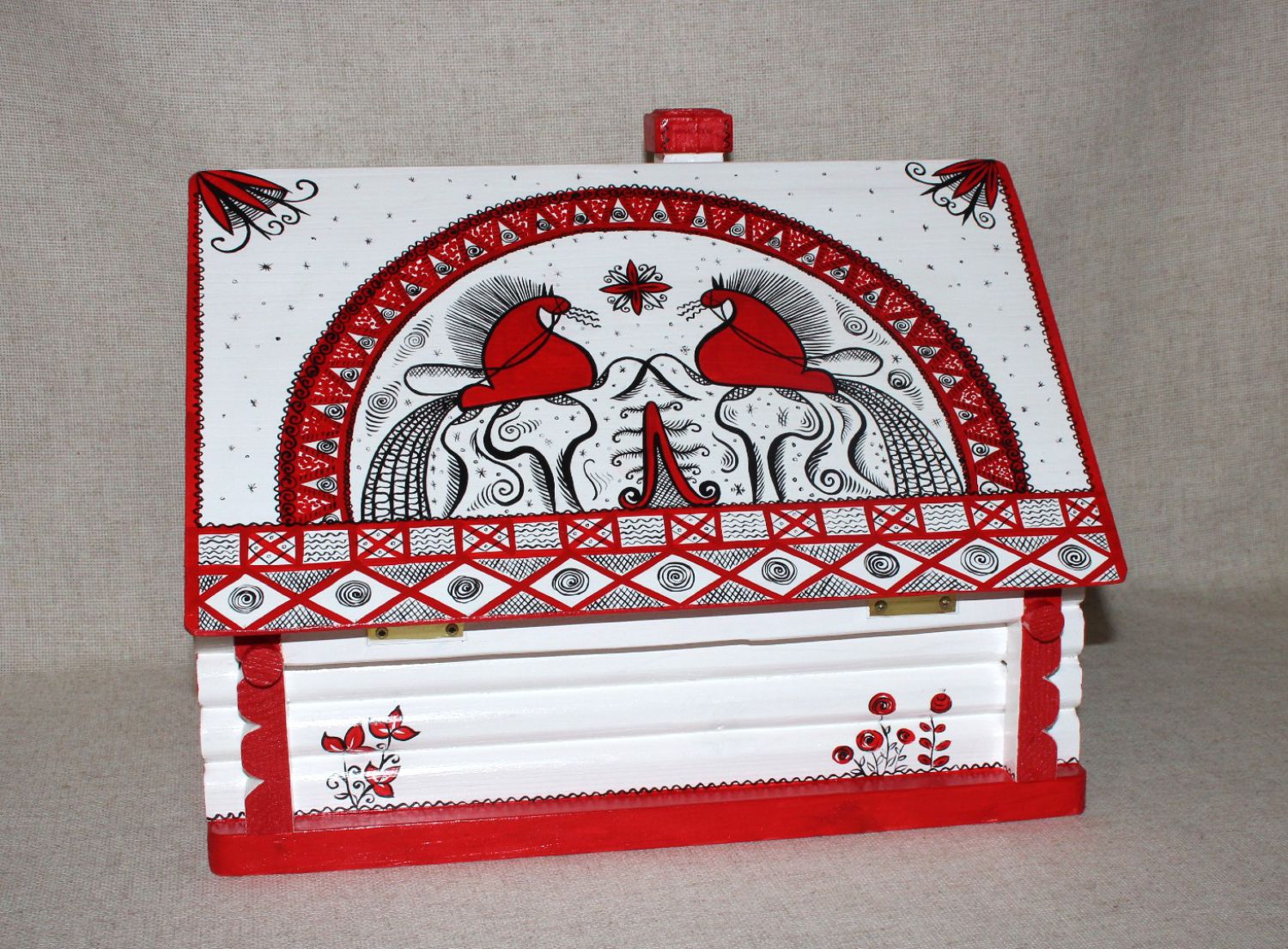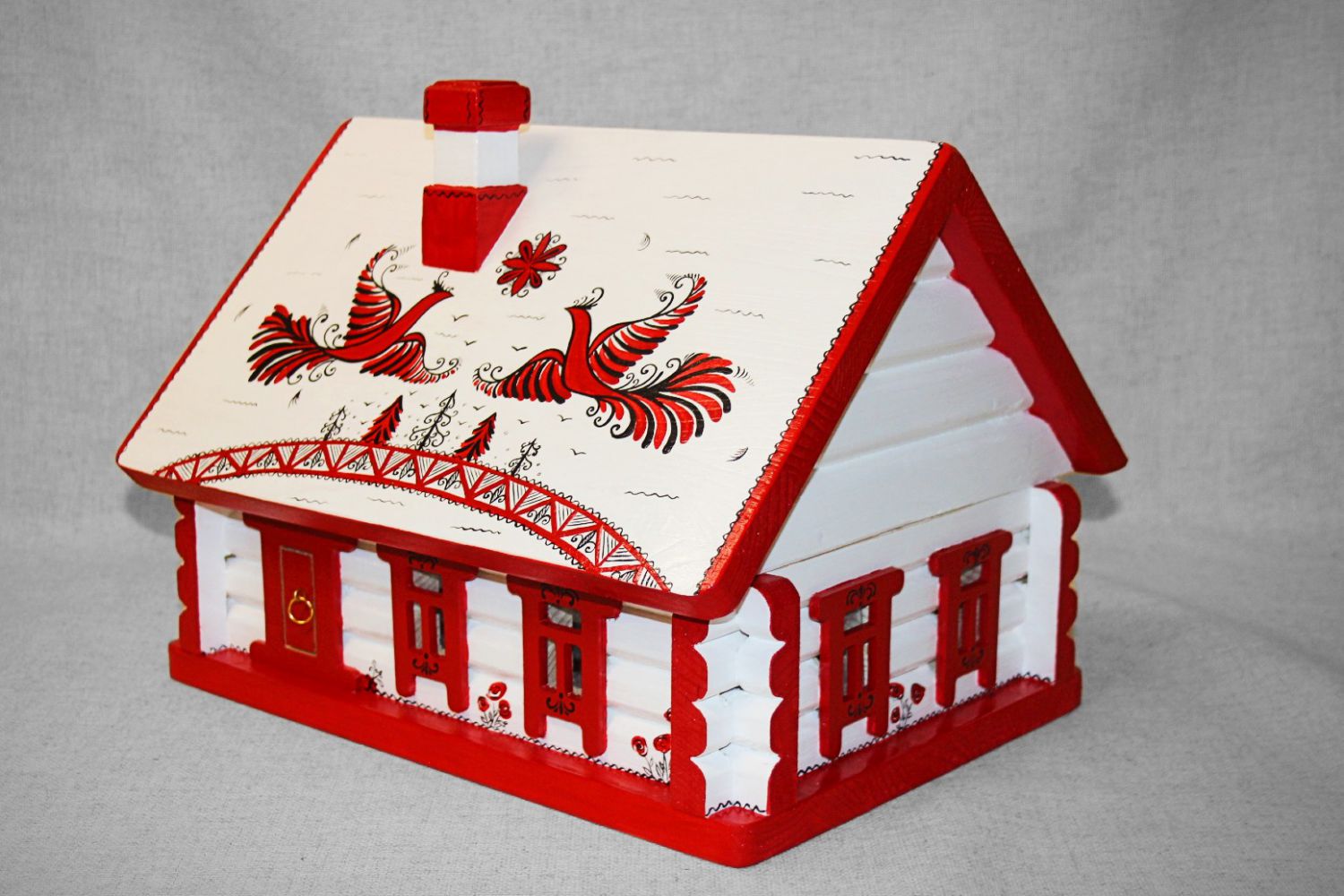 - Дизайн: оригинальная форма домика с традиционными узорами, придающими изделию особый шарм и уют.