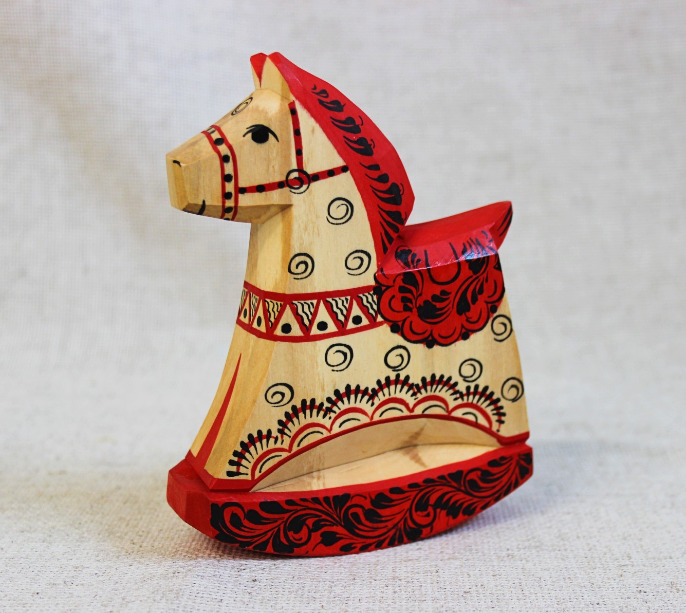 - Дизайн: оригинальная форма, искусная резьба и роспись делают лошадь уникальной.