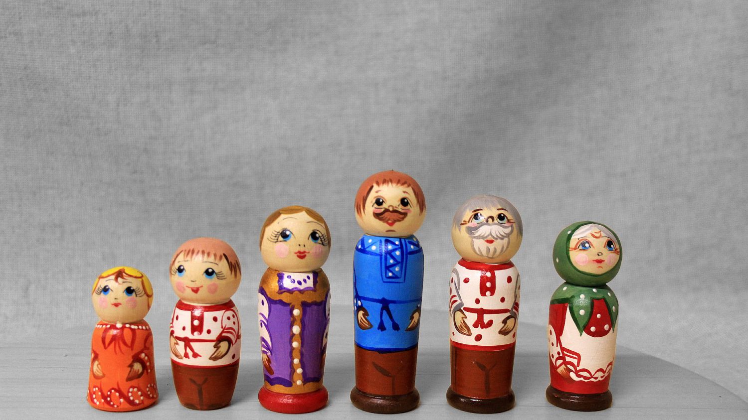 Жили-были, не тужили… три поколения семьи. Все они в красивой традиционной русской одежде – сарафанах, рубахах, штанах. Такие фигурки – превосходный материал для разыгрывания с ребенком детских сказок или игровых ситуаций. Тут есть и мальчик, и девочка, а значит, можно разыграть сказки «Гуси-Лебеди», «Сестрица Аленушка» и многие другие сказки, где есть сыночек или дочка. А если добавить немного фантазии и фигурок из других наборов, то количество сказок уже может исчисляться десятками.