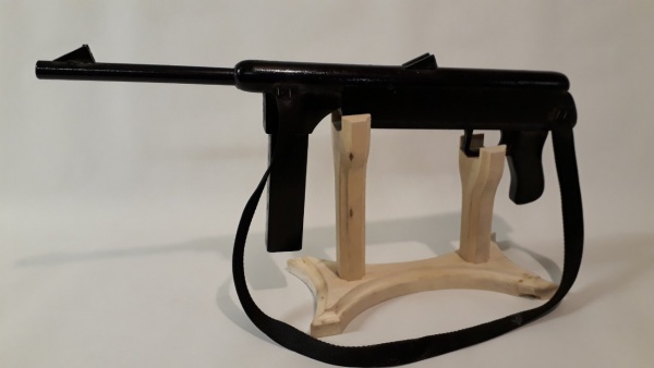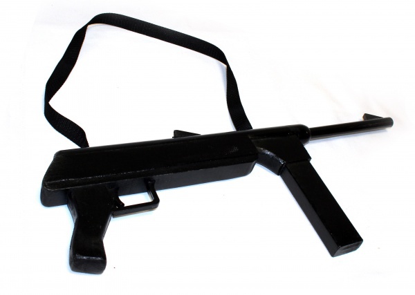 Автомат Немецкий выточен из экологически чистой прочной древесины. Чёрная акриловая краска довершает образ. Перекидываем корсажную ленту через плечи, держим оружие двумя руками – к безопасному бою готов! Вес всего около 320 г.