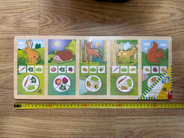 С помощью такого увлекательного пазла у детей развивается усидчивость, логическое мышление, воображение, мелкая моторика и внимательность. Кроме того, малыши учатся считать, запоминают названия животных и продуктов их питания.